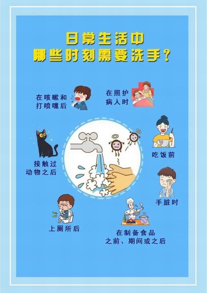 使用肥皂(洗手液)和流水搓手時間應不少于 20 秒。謹記洗手七字口訣。擦手時最好使用一次性擦手紙,如果沒有,用潔凈的毛巾擦拭,毛巾變濕時需及時更換。