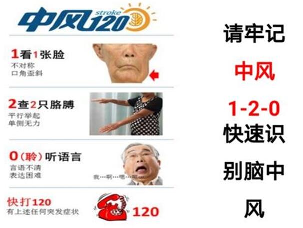 一是國家衛生健康委腦防委、中國卒中學會推薦的“1-2-0”三步識別法: