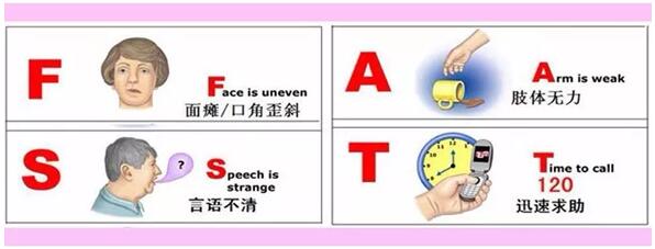 Time(時間):有兩重含義,第一重是如果上述三項檢查有任何一項不能完成,而且是在短時間出現,需考慮卒中的可能;第二重是應該盡早就診,盡量前往有溶栓能力的醫院,并告知主要癥狀和發病時間。