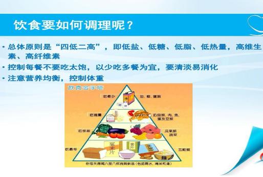 2.合理飲食:以低鹽低脂、清淡易消化飲食為主,飲食規(guī)律,每餐進(jìn)食七分飽,避免暴飲暴食,多吃富含粗纖維的蔬菜水果,如芹菜、菠菜、胡蘿卜、香蕉、蘋果、獼猴桃等,保持大便通暢、勿屏氣用力排便,以免誘發(fā)心肌缺血現(xiàn)象;合并高血糖、糖尿病患者應(yīng)嚴(yán)格控制水果攝入量,多食優(yōu)質(zhì)蛋白:蝦、魚類、雞肉、瘦豬肉、豆制品。每日食用油量25g,用鹽量不超過6g,約1啤酒瓶蓋。口味偏咸有很多弊端,可升高血壓、引起動脈粥樣硬化,限制鈉鹽攝入量。每天飲水2000ml左右可以保證機(jī)體基礎(chǔ)水分需求。