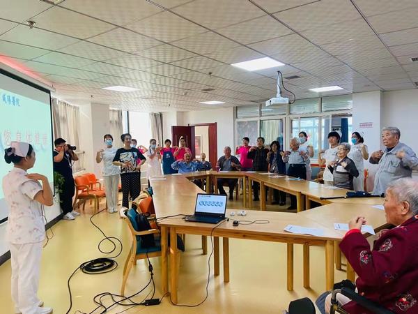 同時,還為老人們精心準備了“預防卒中保健操”,在劉敏護士長的帶領下,老人們在肢體的伸展與屈曲之間,老人們感受到了來自白衣天使溫暖的關懷。