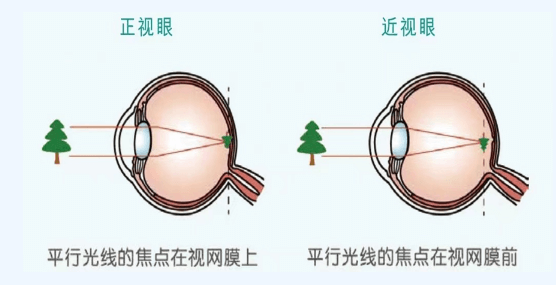 眼球在無調節的狀況下,5米以遠的平行光線,通過眼的屈光系統曲折后,焦點在視網膜之前。