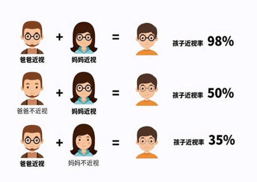 父母有一方近視,或雙方均近視,孩子出現近視的風險性遠高于父母雙方都不近視的孩子。據臨床研究顯示,近視的發生、發展與30個基因位點存在關聯性。單純性的近視與用眼時長有關,長時間視疲勞更容易近視,而病理性的近視則受到遺傳因素影響。