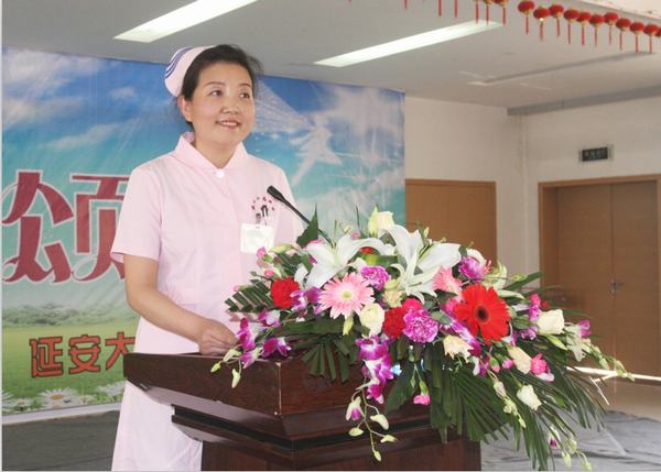首先護(hù)理部徐京華主任致辭,表達(dá)了對廣大護(hù)士節(jié)日的祝福,希望通過表彰、獎勵先進(jìn),激勵和帶動全院護(hù)理人員學(xué)習(xí)先進(jìn)、趕超先進(jìn)和全心全意為患者服務(wù)的工作熱情,促進(jìn)護(hù)理工作再上新臺階。對護(hù)理工作做一階段總結(jié),在踐行“優(yōu)質(zhì)護(hù)理服務(wù)示范工程”活動過程中,在醫(yī)院領(lǐng)導(dǎo)的大力支持下,圍繞今年工作重點(diǎn),全院護(hù)士積極努力,采取有效措施使得我院優(yōu)質(zhì)護(hù)理服務(wù)工作得以穩(wěn)步發(fā)展,全院臨床科室全部開展,今年新開病區(qū)也已遞交申請書和開展計(jì)劃方案。以病人為中心,深化專業(yè)內(nèi)涵,責(zé)任護(hù)士全面負(fù)責(zé),使病人感受到“這里的每名護(hù)士都關(guān)心您”。去年至今,病人點(diǎn)名表揚(yáng)護(hù)士500余人,最多被點(diǎn)名表揚(yáng)18次,收到表揚(yáng)信330封。近幾年我院護(hù)理工作成績斐然,2次被評為陜西省優(yōu)質(zhì)護(hù)理示范工程“先進(jìn)集體”榮譽(yù)稱號;每年被評為咸陽市先進(jìn)集體;今年我院又被評為咸陽市“2014年度優(yōu)質(zhì)護(hù)理服務(wù)先進(jìn)單位”;心血管內(nèi)五科病區(qū)被評為咸陽市“2014年度優(yōu)質(zhì)護(hù)理服務(wù)先進(jìn)病區(qū)”;邢娟護(hù)士長、周莉護(hù)士被評為咸陽市“2014年度優(yōu)質(zhì)護(hù)理服務(wù)優(yōu)秀護(hù)士”。