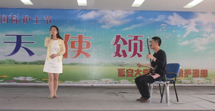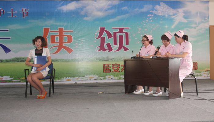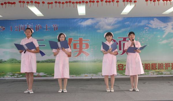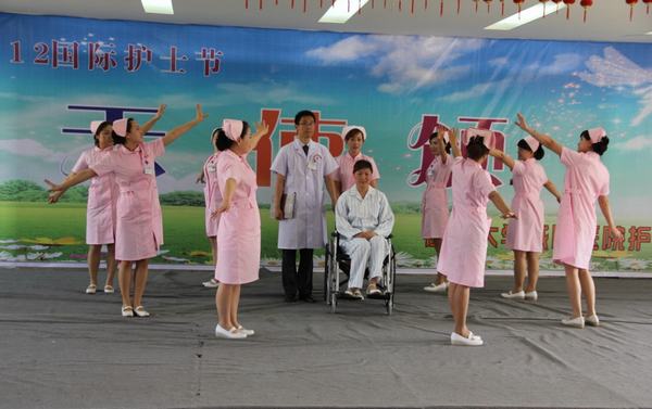 慶祝節(jié)目精彩紛呈,心臟系統(tǒng)的表演劇《我是一名護(hù)士》,從護(hù)士職業(yè)禮儀的站、坐、行、蹲、推治療車、持病歷夾等方面進(jìn)行了護(hù)士禮儀展示,在優(yōu)美的背景音樂襯托下,莊重而優(yōu)雅,標(biāo)準(zhǔn)而婀娜的禮儀展示,如一場美妙的音樂劇,贏得了觀眾的陣陣掌聲。秦腔表演《十五貫》片段,展示了我們護(hù)理人的多才多藝,其哥哥的板胡伴奏更為節(jié)目錦上添花。腦血管病系統(tǒng)帶來了舞蹈《印度風(fēng)情》,病房里,白衣天使展現(xiàn)的是她們輕巧嫻熟的技術(shù),而舞臺上的她們舞姿輕盈優(yōu)美,臺下掌聲和歡呼聲此起彼伏。隨后在磅礴的音樂伴奏下,四位護(hù)士緩緩走上舞臺,此刻的她們美麗、純潔、高貴、神圣,燕尾帽下的張張笑臉為我們譜寫了大愛無疆的《天使頌》。女聲獨(dú)唱將《那片?!分袌?zhí)著的情感演繹的淋漓盡致。外科系統(tǒng)精心準(zhǔn)備了三句半《護(hù)士真善美》,你看,她們敲鑼打鼓、氣勢驕人,卻用簡捷、詼諧的語言,將外科各科職業(yè)的辛酸和快樂表達(dá)的活靈活現(xiàn),時而感人至深,時而令人捧腹大笑。內(nèi)科系統(tǒng)演繹的小品《招聘新時代》,將大會推向了高潮,演員們精神飽滿、配合默契、詼諧幽默,將招聘時的各種狀況表演的惟妙惟肖,贏得觀眾的頻頻尖叫聲和喝彩聲,讓人不禁聯(lián)想起了自己當(dāng)年應(yīng)聘的情景。外科系統(tǒng)、內(nèi)科系統(tǒng)的娛樂節(jié)目:《快樂傳真》和《蘿卜蹲》更是讓整個會場充滿了開懷的笑聲,成了歡樂的海洋。