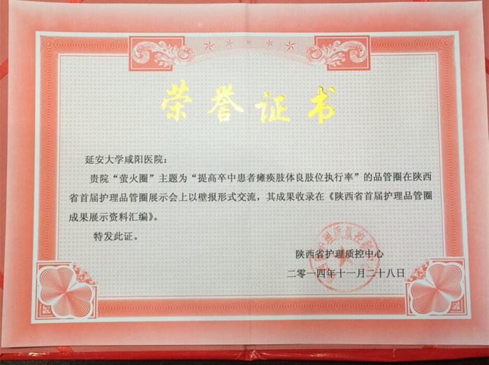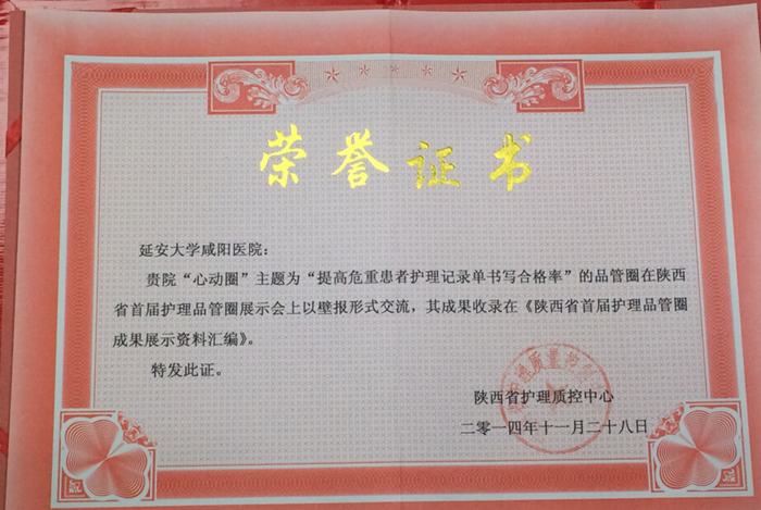 11月27日至28日,由陜西省質(zhì)控中心主辦的陜西省第一屆護(hù)理品管圈成果匯報大會在西安市隆重召開。全省各地精選的22家醫(yī)院品管圈項目代表參加了此次會議。其中有12家醫(yī)院品管圈上臺進(jìn)行PPT演示講解,并獲得獎勵,并有10家醫(yī)院品管圈在展示會上以壁報形式交流,我院有兩個團(tuán)隊心外科的 “心動圈”(主題:提高危重患者護(hù)理記錄單書寫合格率)及康復(fù)科的“螢火圈”(主題:提高卒中患者癱瘓肢體良肢位執(zhí)行率)參加壁報交流,成果被收錄入《陜西省首屆護(hù)理品管圈成果展示資料匯編》。我院是咸陽市唯一進(jìn)入成果展示醫(yī)院,為咸陽市護(hù)理界和我院爭得榮譽(yù)。