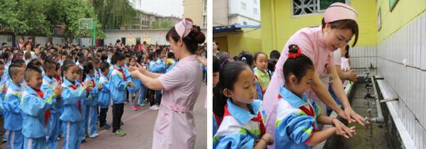 護士節前夕的一個早上,延安大學咸陽醫院的十多名護士在陳英總護士長帶領下,踏著清晨柔和的陽光,沿著校園小路,來到文林路小學。組織了“健康中國,科普助力—護士與您攜手共創健康生活”的進校園,教洗手,健康生活活動。