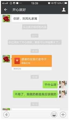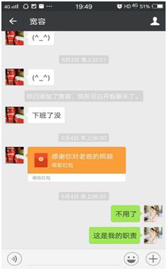 趙阿娟曾經(jīng)護(hù)理過一位病人,因為細(xì)心的護(hù)理和照料,家屬對她感激不已,兩位家屬先后希望以微信紅包的方式表達(dá)他們的感謝:“阿娟,老爺子在病重期間得到你悉心的照料,老人特別感激你,經(jīng)常對我們說要好好感謝你?,F(xiàn)在老人走了,我們替老人完成他未了的心愿,以表達(dá)我們的感激之情。錢不多,可這是我們?nèi)业男囊?,請收下紅包,不要讓老人心里有遺憾。本來想給孩子買點吃的,但是不方便給你。如果你不領(lǐng)紅包,我們心里會很難過?!?BR style="FONT-FAMILY: "> “阿姨,這是我應(yīng)該做的,用心做好護(hù)理工作,這是我的職責(zé)。老爺子走了我也很難過。”趙阿娟平靜的回答道。這是多么樸實又讓人欽佩的回答啊!