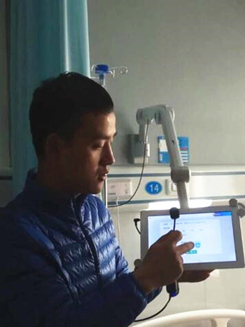 2017年11月23日早上8:00,延安大學咸陽醫院床旁支付啟動儀式在腦血管大樓一樓大廳舉行,啟動儀式由康彥文院長主持,全院臨床科室護士長及信息管理部全體成員參加??翟洪L在致辭中說道,傳統的繳費方式,患者或家屬需要帶著現金、銀行卡到收費窗口排隊繳費。如若遇家屬上班還需請假過來繳費,不能趕赴過來的,只能等到第2天補交。因系統設置問題,難免會影響到患者的檢查、治療,甚至影響醫患關系。如何優化繳費流程,縮短繳費時間,節約患者及家屬的時間,提高患者滿意度,一直是醫院努力的方向,支付寶為我們提供了這一平臺,其繳費不受時間、空間的限制,而我院的最大優勢就是床旁智能系統,讓患者能夠在病床旁就完成支付,極大地為患者提供了方便。而支付寶支付只是我們啟動線上支付的第一步,接下來,還將陸續提供多種線上支付方式,盡最大努力為患者提供方便。隨后信息管理部的工程師在神經內科一病區對全院護士長進行了床旁支付的操作培訓,以便于更好的對各病區患者及家屬進行詳細的講解,得到了大家的交口稱贊。
