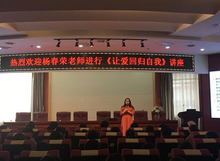 2018年3月8日16:00由護理部舉行并組織的“慶祝三八國際勞動婦女節(jié),關(guān)注護士心理健康”大型公益心理講座—“讓愛回歸自我”在我院腦血管樓第三學(xué)術(shù)廳如期舉行。此次活動特邀請國家二級心理咨詢師/咸陽星星河家庭教育機構(gòu)創(chuàng)始人楊春榮老師,來我院為護士進行心理減壓輔導(dǎo)。蒞臨此次講座的有:護理部主任楊敏、各個系統(tǒng)總護士長以及我院200余名護理工作者。