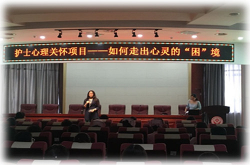 關注患者,更關注護士,在當前的醫療環境下,護士的工作壓力越來越大,為了緩解護士的心理壓力,樹立“快樂工作,快樂生活”的信念,延安大學咸陽醫院護理部2018年啟動了護士心理關懷項目,2018年5月15日下午,以“ 如何走出心靈的‘困’境 ”為主題的心理講座在延安大學咸陽醫院腦科樓三樓會議室舉行。這是近一年來的第三次心理講座,也是5.12國際護士節的系列活動之一。本次活動邀請到了國家二級心理咨詢師、咸陽市心理健康教育研究會楊春榮理事,參加本次講座的還有護理部楊敏主任,各系統總護士長及有心理疏導需求各個科室護士。為了使疏導有針對性,護理部前期特意發放了護士壓力源調查問卷,本次講座以調查中排名靠前的五個問題展開,從“現實世界”走進“心理世界”與護士進行了一次心靈深處的對話。