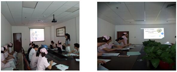 護理實習生是護理事業傳承和發展的希望,臨床護理教學是實習生成長的橋梁。為加強我院師資隊伍建設,提升護士授課水平,2019年7月11日延安大學咸陽醫院腦血管病院組織展開了“臨床護理教師帶教比賽”。本次比賽將其分為兩組進行。第一組在神經內科十五病區示教室,由高佩佩護士長負責,由曹靜等護士長擔任評委老師,11人參賽;第二組在神經內科六病區示教室,由張春妮護士長及張文靜護士長負責,由燕美霖等護士長擔任評委老師,10人參賽。