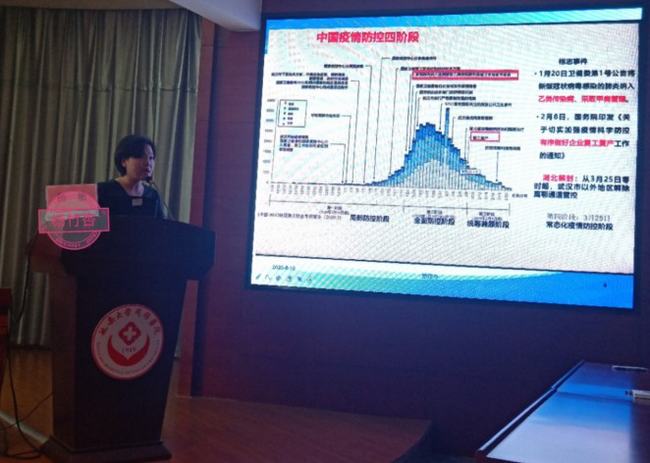8月10日培訓伊始,楊敏主任向廣大來我院學習的實習生表示熱烈的歡迎。她強調護理崗前培訓是實習生從課堂走向臨床的橋梁;學生們通過崗前培訓可以消除進入臨床的顧慮與擔憂,增加實習的信心。接下來她就延安大學咸陽醫院概況及“仁愛為本,慎獨為魂”的護理理念進行了授課;隨著新冠病毒的“侵略”,實習生崗前培訓增加了“院感知識”,感控辦楊竹杏主任從手衛生、標準防護等知識全方面進行講解。