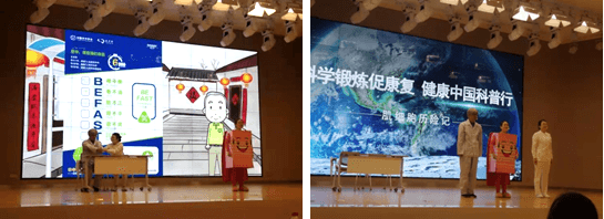 本次比賽,我院護理部高度重視,層層選拔人員,時時關注進度,并邀請具有比賽經驗和演講功底的老師進行全程指導?!都〖毎麣v險記》由張莎扮演肌細胞、灰猛強扮演患者王大爺、董星辰演繹康復專科護士,以肌細胞為第一人稱生動的講述了它的歷險經歷,而王大爺也形象的還原了生活中患者的真實情況,十分有代入感,康復專科護士則通過扎實的專業知識通俗易懂的指導患者正確康復運動,體現了康復??谱o士在腦卒中患者康復過程中的價值。除此之外,作品還強調了快速識別腦卒中的重要性以及溶栓治療的及時性。