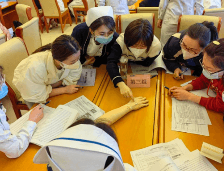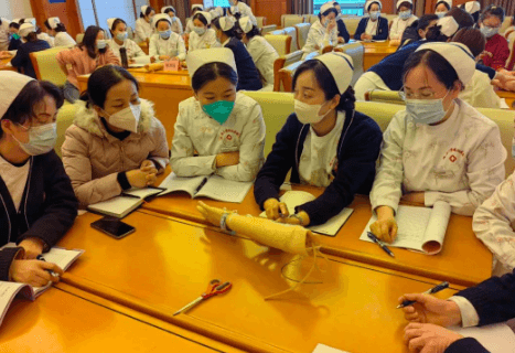 激烈的討論之后,通過一對一、手把手的操作指導(dǎo),讓參加培訓(xùn)人員在練習過程中學(xué)以致用,更加熟練、準確地踐行留置針規(guī)范的固定方法及貼膜撕脫法。