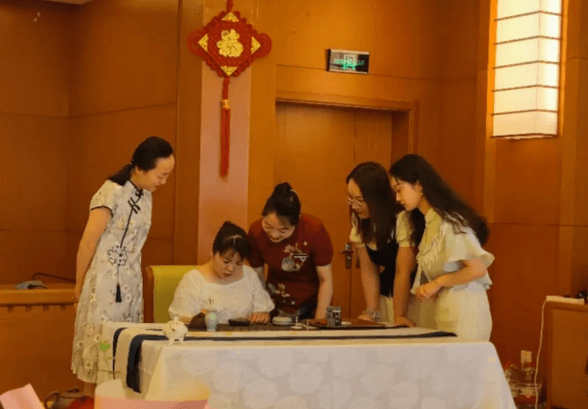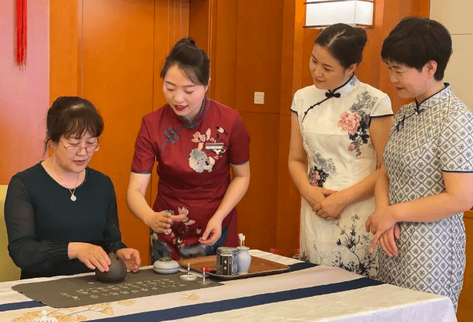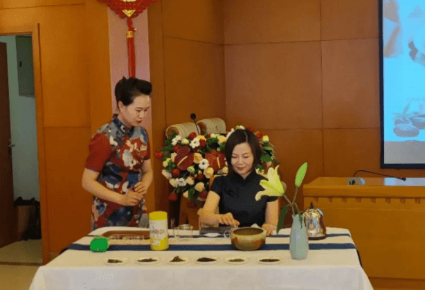 接著兩名茶藝師進行了茶藝基本流程的教授,潤杯、置茶、潤茶、試香、沖泡、奉茶、聞香、品茗,茶香中演繹著茶道之美。茶藝師為大家斟上了春季茶飲,一時間,茶香滿室,沁人心脾,讓我們感受到傳統茶道的獨特魅力。大家專注聆聽、仔細觀察,是學習、是放松更是享受,欣賞完老師行云流水的演示,大家在茶藝師的指導下躍躍欲試,舉手投足之間散發著從容平和,在一泡一品一奉中,靜心凝神,修德習禮。大家共同舉杯,慢飲細酌,分享自己的茶藝心得,放松心靈,享受這份午后的悠然。放松身心陶冶情操,收獲了一份獨屬于自己的快樂與嫻靜。