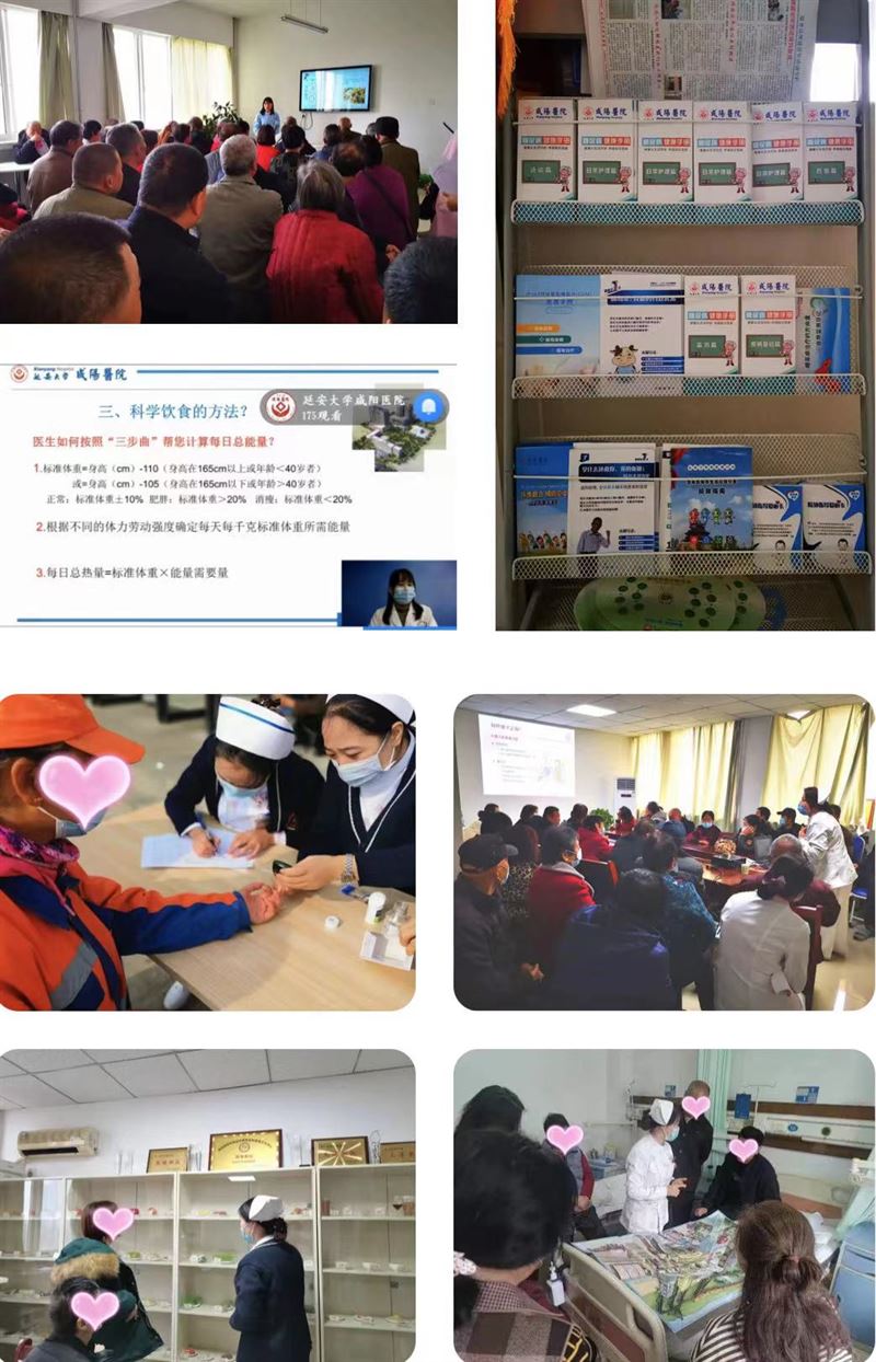 在護理部的指導下,結合科室特色將“糖尿病患者健康教育”做為科室護理服務品牌。在為患者提供個體化的一對一健康教育的基礎上開展各種形式的糖尿病健康教育,①率先在全市開展小組式“看圖對話”健康教育;②購置120種食物模型對患者進行個體化的健康指導;③與宣傳部合作《糖尿病健康大講堂》網絡直播,每月1個主題;④科室每周進行一次糖尿病健康教育講座;⑤定期組織患者進行控糖經驗分享;⑥制作糖尿健康知識系列手冊;⑦每年世糖日開展義診及講座活動,同時還積極與社區、基層聯系下社區進行義診及講座。并制定糖尿病患者的延續性護理服務流程,讓患者出院后也能得到專業的護理指導。