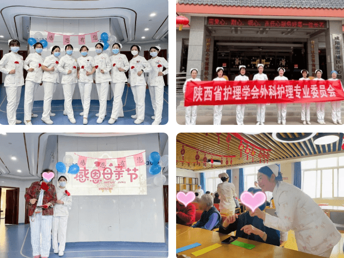 在5月8日母親節當天,護理姐妹們精心策劃,舉辦以花之名,獻愛母親的感恩母親節活動,科室的護士們代替不能陪伴在父母身邊的子女給母親一個深情的擁抱,為這些“媽媽”們送上利用休息時間親手制作的鮮花賀卡,讓科室的“媽媽”們都感受到被愛與被需要,提升了戰勝疾病的信心;國家“十四五”健康老齡化規劃提出,要深入開展老年健康促進行動,為了積極響應國家號召,將這一舉措落實在日常工作中,楊圓圓護士長前往養老院看望孤寡老人,與老人們熱切攀談,指導其如何進行患側肢體功能康復鍛煉,宣講健康知識,為老人們枯燥的生活注入了一縷燦爛的陽光。