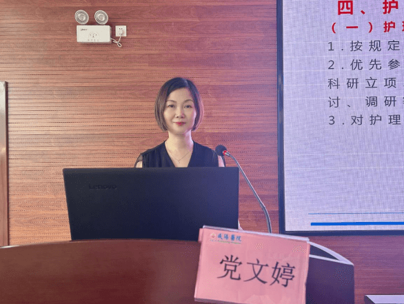 開班儀式由護(hù)理教學(xué)管理委員會委員段秋燕護(hù)士長主持,護(hù)理教學(xué)管理委員會主任委員黨文婷總護(hù)士長為開幕式致辭,她指出臨床護(hù)理教學(xué)貫穿于整個護(hù)理教育體系,是提升護(hù)士核心能力的重要手段,也是護(hù)理高質(zhì)量發(fā)展的重要途徑。希望帶教老師在今后的帶教工作中以傳道授業(yè)為己任,創(chuàng)新帶教模式,拓展帶教思維,深耕專科護(hù)理,保證患者安全,做一位有高度、有溫度的帶教老師,培養(yǎng)一批精專業(yè)、善關(guān)懷的學(xué)生,為醫(yī)院和社會培養(yǎng)更多優(yōu)秀的護(hù)理人才。隨后,黨老師憑借多年的臨床教學(xué)經(jīng)驗(yàn),就護(hù)理教學(xué)相關(guān)管理制度及帶教質(zhì)量檢查標(biāo)準(zhǔn)進(jìn)行了詳細(xì)解讀。