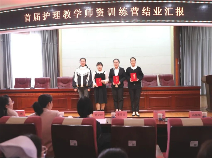 在一片熱烈的掌聲中,楊敏院長助理和黨文婷總護士長為拓歡歡、李榮榮等6名學員頒發優秀學員證書。授課老師王颯責任總醫師、李瑞雪護士長和教學管理委員會秘書孫嬌嬌老師分別為年艷艷、胡飛艷等8位學員頒發了優秀風采獎。這些學員在訓練營中表現突出,成績優異,是本次訓練營的佼佼者,她們的優異表現不僅為自己贏得了榮譽,更激勵著更多護理人加入到護理教育工作中來。