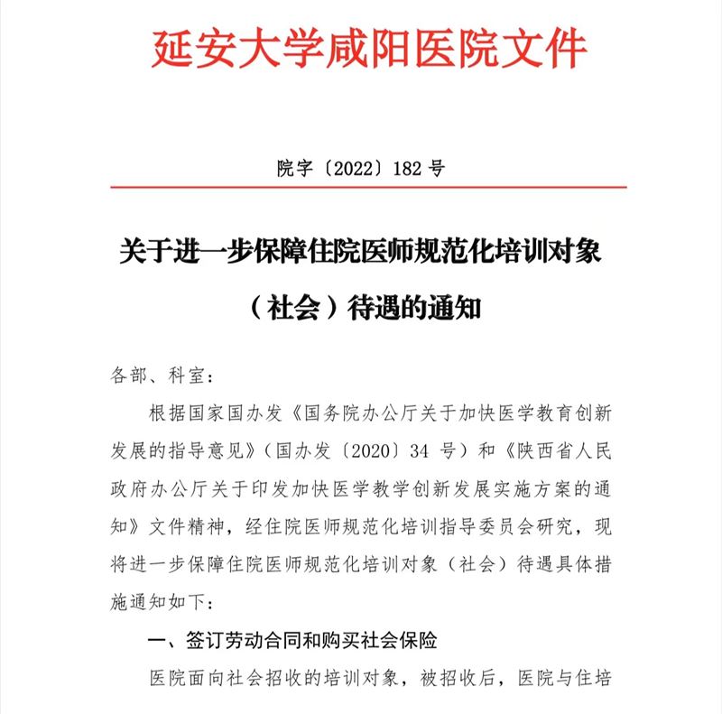 關于進一步保障住院醫師規范化培訓對象(社會)待遇的通知