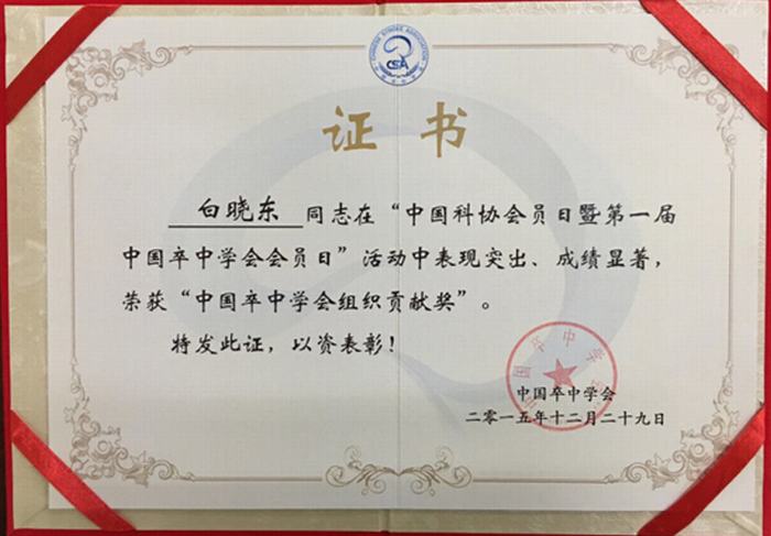 ——熱烈祝賀白曉東同志榮獲“第一屆中國卒中學會組織發展貢獻獎”!
