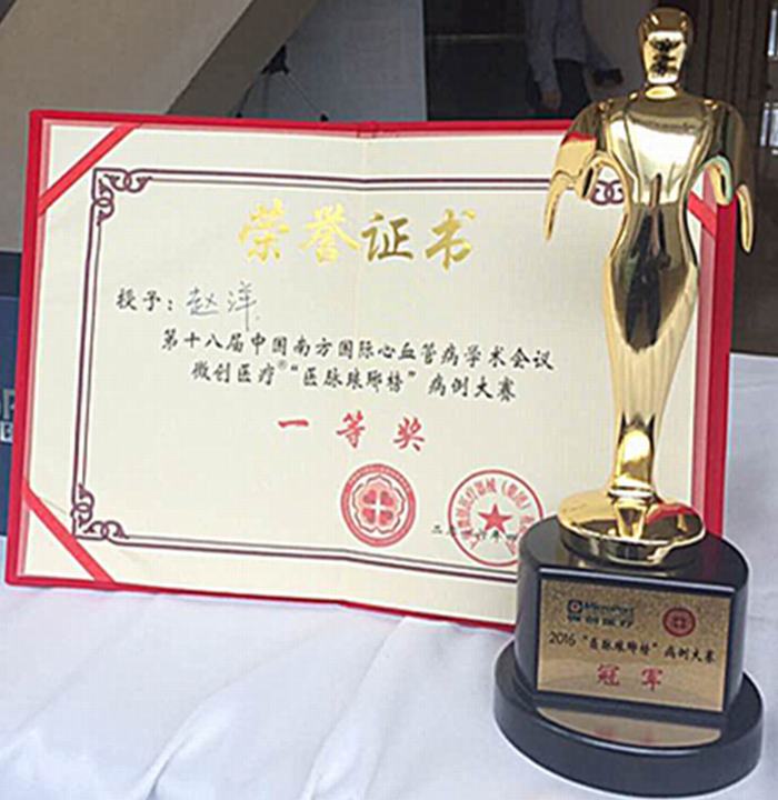 2016年4月7日至10日,第18屆中國南方國際心血管病學術會議在廣州白云國際會議中心舉行,延安大學咸陽醫院心血管病院心內科一病區副主任趙洋撰寫的論文《冠狀動脈痙攣致急性心肌梗死一例》被大會選為專題發言。在[曲徑通“優”]—“醫脈瑯琊榜”病例復雜病變專場大賽中,經過入圍決賽的16名選手的激烈角逐,趙洋最終脫穎而出,榮獲病例大賽一等獎。