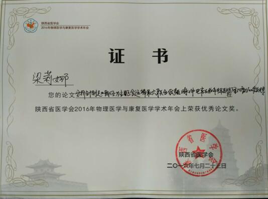 近日,從2016中國中西醫結合麻醉學會(CSIA)年會和陜西省醫學會2016年物理醫學與康復醫學學術年會上分別傳來喜訊,我院麻醉科副主任宋海剛同志成功被聘為中國中西醫結合學會麻醉專業委員會針藥復合麻醉學術委員會委員,康復醫學科責任總治療師梁莉娜同志成功被聘為陜西省康復醫學會康復治療師委員會第一屆委員會委員,梁莉娜同志撰寫的論文“分析針刺足三陰經為主配合遠端取穴聯合低頻脈沖電療在腦卒中早期足下垂內翻的療效觀察”在會上榮獲優秀論文獎!