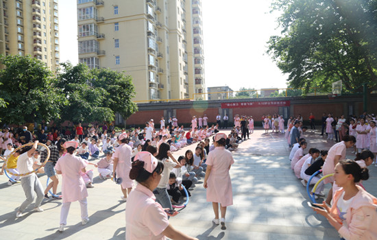2019年5月9日,延安大學咸陽醫院科研教學管理中心和護理部共同舉辦了“凝心聚力,青春飛揚”為主題的“5.12”國際護士節慶祝活動。我院護理見習生參加了慶祝活動,并作為參賽隊伍參加了趣味運動。趣味運動引來了不少來“杏林苑”鍛煉的病患及家屬駐足觀看,現場異常熱鬧。