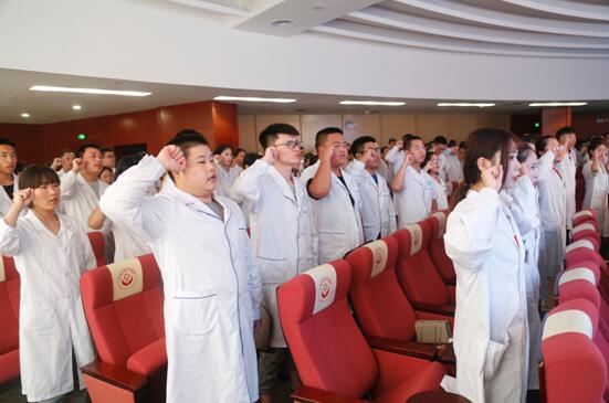 歡迎儀式上,科研教學(xué)管理中心韓曉芳主任代表醫(yī)院對(duì)實(shí)習(xí)生來(lái)院學(xué)習(xí)表示歡迎,并對(duì)醫(yī)院的基本情況進(jìn)行了介紹,隨后對(duì)大家在醫(yī)院的學(xué)習(xí)生活提出幾點(diǎn)寶貴的意見(jiàn),希望同學(xué)們能迅速?gòu)乃枷肷贤瓿山巧ㄎ缓娃D(zhuǎn)變,更好、更快的適應(yīng)新環(huán)境,以滿腔熱情投身于實(shí)習(xí)中去,做一個(gè)文化素養(yǎng)與專業(yè)素質(zhì)兼?zhèn)涞尼t(yī)學(xué)人。隨后,學(xué)生代表熊林勇帶領(lǐng)全體實(shí)習(xí)生進(jìn)行宣誓。