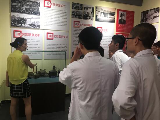 為使新入院實習生迅速融入醫院,了解醫院的發展沿革和歷史脈絡,深刻感受醫院的文化內涵和深厚底蘊,2019年7月24日——25日,科教部組織270余名實習生對院史館進行分批次參觀。