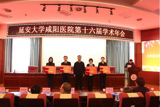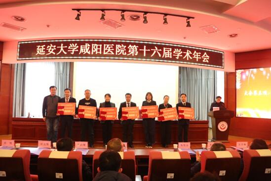 2020年1月10日下午,我院在腦血管病院三樓第三學術廳隆重召開“延安大學咸陽醫院第十六屆學術年會”。張海濤院長、姚曉峰常務副院長、呂輝總會計師、祝恒山副院長、腦血管病院慕廷民院長、心血管病院吳棟梁院長、科研教學管理中心韓曉芳主任、內科病院王丙聚院長、外科病院姚春和副院長、劉連鋒院長助理及各職能科室負責人、獲獎人員及醫護人員共計260余人參加了本次盛會。本次大會由姚曉峰常務副院長主持。