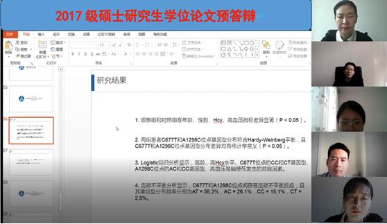 2017級研究生們通過屏幕共享和現場線上視頻,利用PPT以圖文并茂的形式圍繞論文的選題目的與意義、國內外研究情況、研究方法和論文主要框架及結論等方面,對自己的畢業論文進行了全面詳細的陳述。預答辯專家小組以嚴謹的學術態度仔細聽取匯報、詳查論文格式,圍繞論文設計、方法資料、數據分析、結果展示、文獻引用等方面進行了中肯細致的點評,指出了選用統計方法描述不夠精準、論文格式欠規范、引用新文獻比例不足等通病,針對每名研究生的論文進行針對性、啟發式的提問。研究生們認真記錄專家們的寶貴意見及建議,并能較為準確流暢地回答相關問題,現場學術氣氛濃厚。