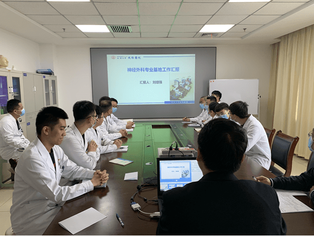 為進一步強化陜西省人民醫院與我院的住培教學聯動,2021年4月22日,陜西省人民醫院教學處副處長溫紅俠、神經外科專業基地教學主任繆星宇、神經內科專業基地教學主任邸偉一行3人對我院住院醫師規范化培訓工作進行督導檢查。我院院長張海濤、科研教學管理中心主任韓曉芳,副院長王丙聚,神經內科專業基地主任陳萍,教學主任郭愛紅、姬利,神經外科教學主任劉增強、巨濤,專業基地教學秘書,住培辦管理人員以及相關科室人員陪同檢查。