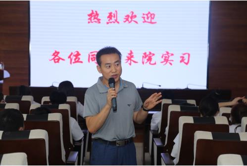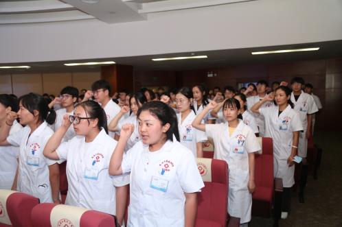 歡迎儀式上,科研教學管理中心韓曉芳主任代表醫院對實習生來院學習表示歡迎,并對醫院的基本情況進行了介紹,隨后對大家在醫院的學習生活提出六點寶貴的意見,希望同學們能迅速從思想上完成角色定位和轉變,更好、更快地適應新環境,以滿腔熱情投身于實習中去,做一個文化素養與專業素質兼備的醫學人。隨后,學生代表劉宇成帶領全體實習生進行醫學生宣誓。