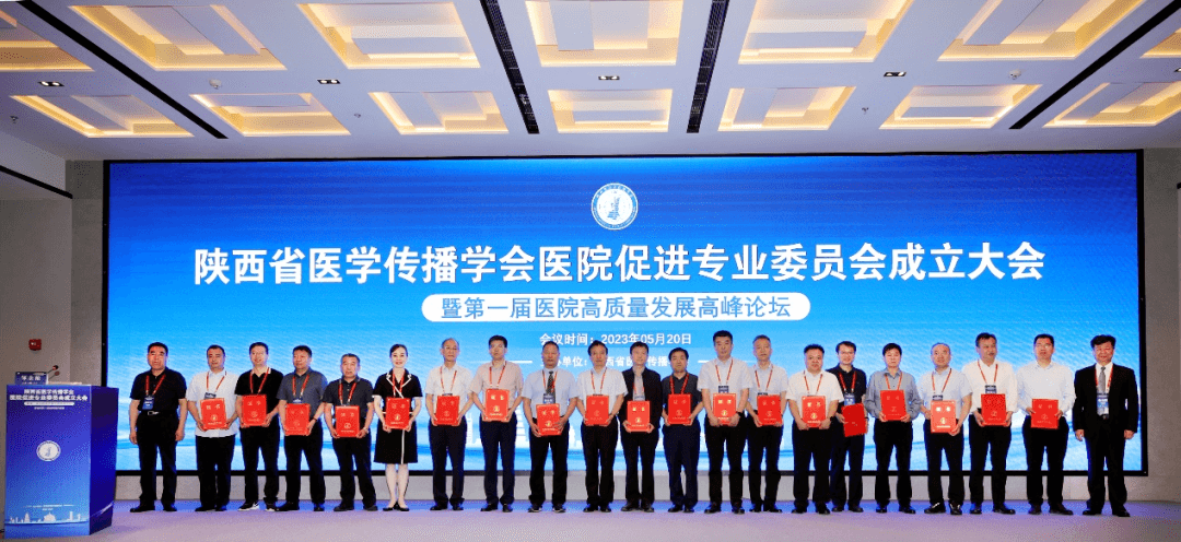 5月20日,陜西省醫學傳播學會醫院促進專業委員會成立大會暨第一屆醫院高質量發展高峰論壇在西安隆重舉行。清華大學醫院管理研究院常務副院長張宗久、國家衛生健康委員會醫政司醫療質量與評價處副處長高嗣法線上出席,中日友好醫院紀委書記高學成、國家衛生健康委員會衛生發展研究中心研究員王春玉、陜西省人民政府參事劉寶琴、陜西省醫保局一級巡視員王睿民、西安交通大學副校長呂毅、陜西省醫學傳播學會會長李宏杰、陜西省衛生健康委員會原醫政醫管局局長安海燕、陜西省醫學傳播學會常務副會長兼秘書長王維君、陜西省醫療保險基金中心主任劉偉、西安交通大學第一附屬醫院東院區執行院長鄒余糧、陜西省醫學傳播學會常務副秘書長楊俊超等來自全省醫療界的知名專家學者齊聚一堂,共同研討推動醫院高質量發展。本次成立大會上,延安大學咸陽醫院黨委書記王丙聚當選第一屆副主任委員。