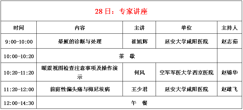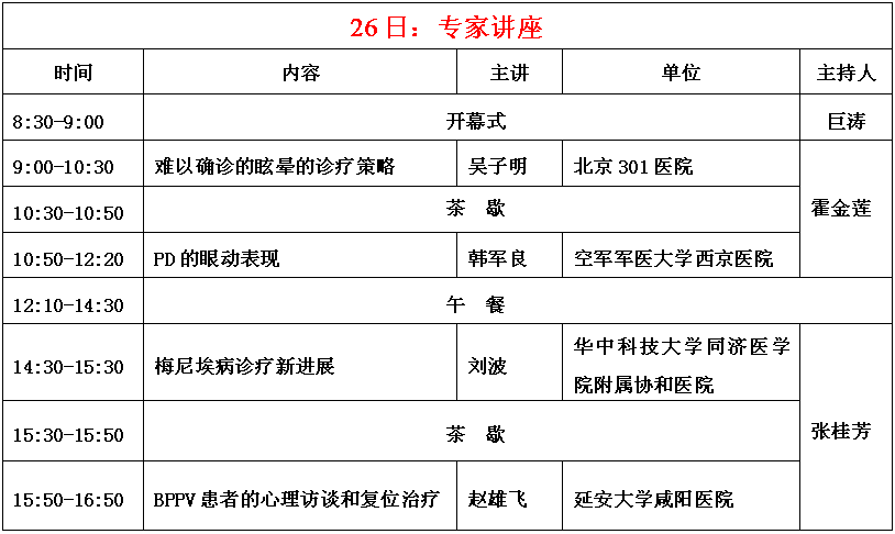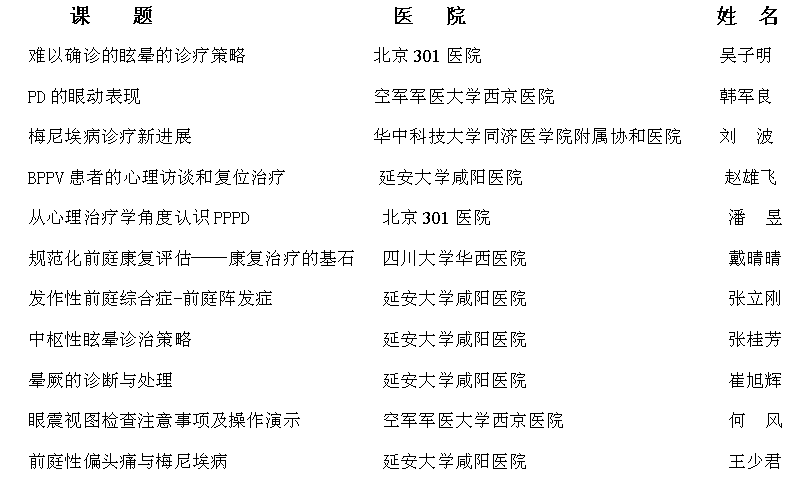 基層醫院眩暈疾病規范化診治培訓班課程安排表