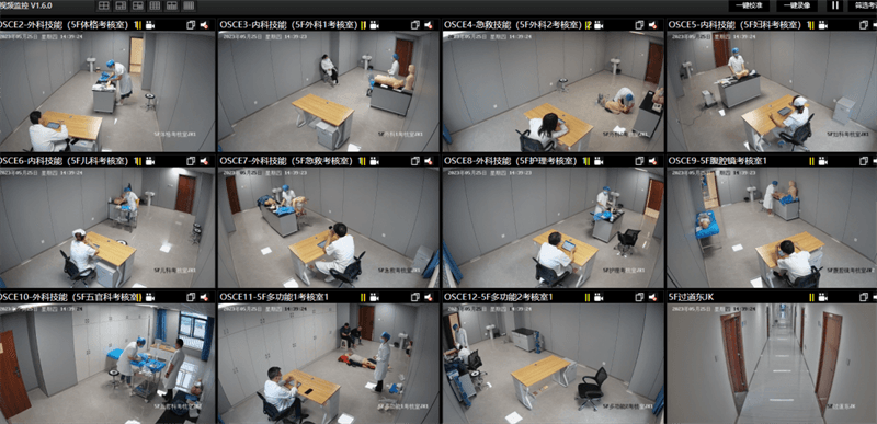 考核是檢驗培訓效果及醫師能力水平的最直接手段。在考核驗收階段,我院采取OSCE考站系統,于5月24日-25日在教學樓五樓進行分站考試。此次考核,使用了OSCE考站系統對考生進行了分組、分時段的合理安排,確保每位考官可以按照排考計劃對考生嚴格執行考核評價。考生可通過考站外智慧門牌,實時查看考試信息,考務管理人員及考核小組可在中控室通過監控系統實時查看各考站情況,必要時視情況通過全體廣播發布通告。本次考試摒棄了傳統的紙制評分表,使用iPad進行現場打分。考試結束后,可第一時間獲得考生排名、分值明細,自動生成相關數據表格與分布圖,為薄弱環節的查漏補缺提供了有力的數據支持。