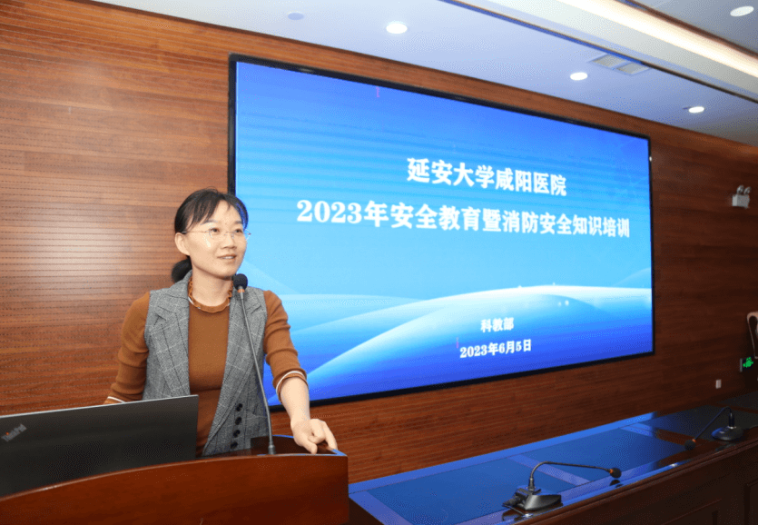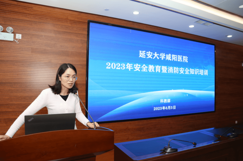 2023年6月5日下午14:00,為進(jìn)一步加強(qiáng)醫(yī)院安全管理,切實(shí)把“安全第一,預(yù)防為主”的安全理念落到實(shí)處,提高全院學(xué)生消防意識和消防技能,積極參與醫(yī)院消防“四個能力”建設(shè),科教部在外科樓第四學(xué)術(shù)廳組織開展2023年安全教育暨消防知識安全知識培訓(xùn)??蒲薪虒W(xué)管理中心陳青副主任、消防科郭俊鵬科長、消防科寇森隊(duì)長、科教部樊高俠教學(xué)主管及科教部教學(xué)管理人員,在院住培生、研究生、見習(xí)生約200人參加了此次培訓(xùn)。培訓(xùn)會議由科教部樊高俠主管主持。