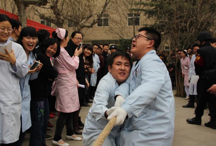 為紀念“三八”國際婦女節,豐富職工的業余生活,提升團隊合作精神,延安大學咸陽醫院院工會于2016年3月8日下午在醫院噴泉廣場舉辦了“拔河比賽”活動,院工會主席亓梅、辦公室主任李鵬、質量控制辦公室主任侯安剛、保衛科科長寇東亮以及在全院部分職工參加了此次活動。