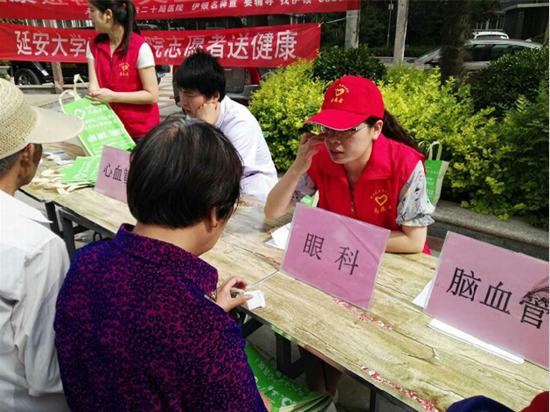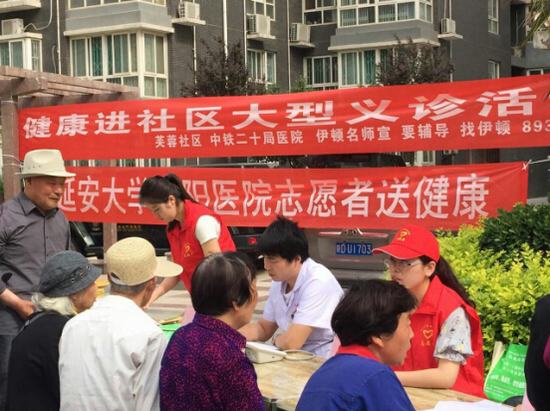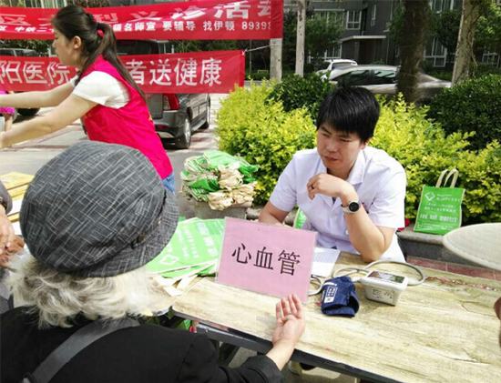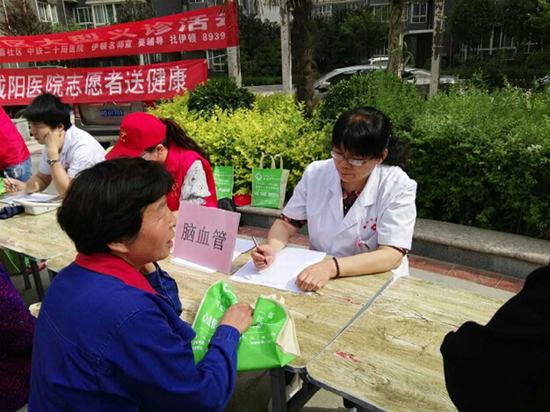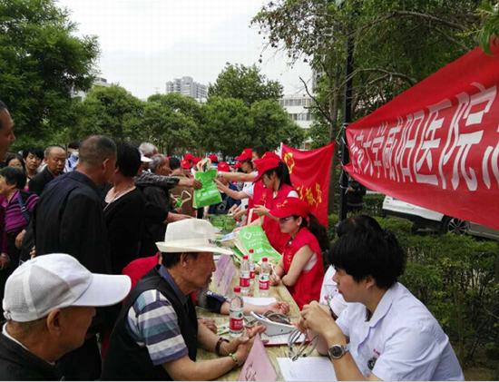 為了提高社區居民的健康知識水平,增強居民的健康保護意識,讓社區居民們在自家門前就能享受到免費醫療保健服務。5月5日至5月6日,延安大學咸陽醫院的醫療專家及志愿者們在芙蓉小區、西蘭街道辦、濱河社區、新興街辦鳳凰廣場開展了送健康進社區大型義診活動。向社區居民進行健康保健知識的宣傳,同時義務為居民進行健康體檢和健康咨詢。