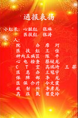 表揚:心八科:吳 朝 保障部:王 晶 盧光濤