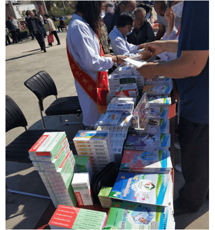志愿者則通過展板宣傳,發放宣傳手冊和口頭講解等方式向群眾宣傳健康常識,并向廣大群眾提供診療指導、健康咨詢、免費查體、測血壓等服務。當天共服務群眾 200余人,免費查體150余人,發放科普書籍200余份,心電圖檢查40余人,測血壓150余人,受到基層群眾的熱烈歡迎。