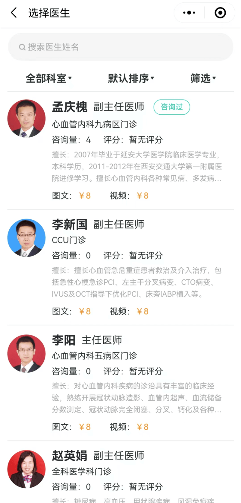可進行病情咨詢、報告解析、用藥建議、診后指導等診療服務,以圖文和視頻兩種方式進行咨詢交流。