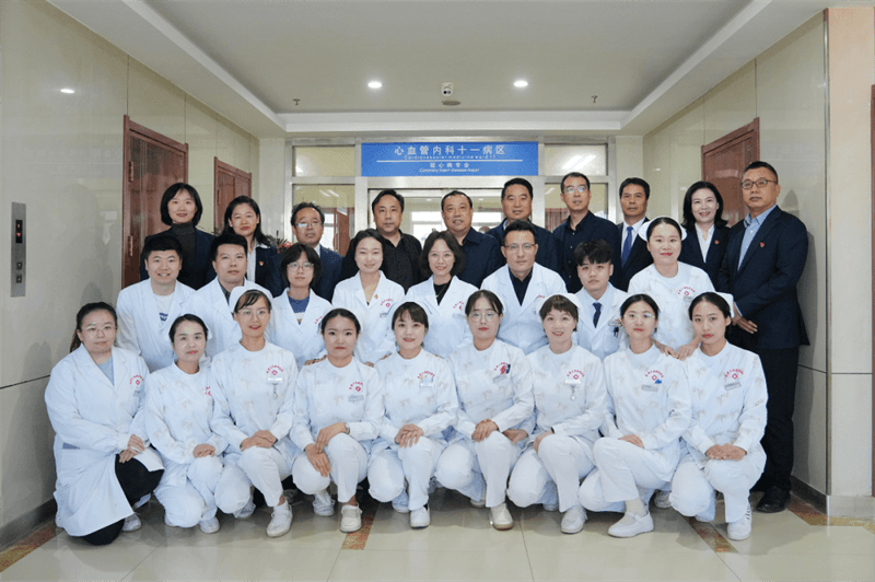 各位領(lǐng)導(dǎo)與心血管內(nèi)科十一病區(qū)醫(yī)護(hù)人員合影留念