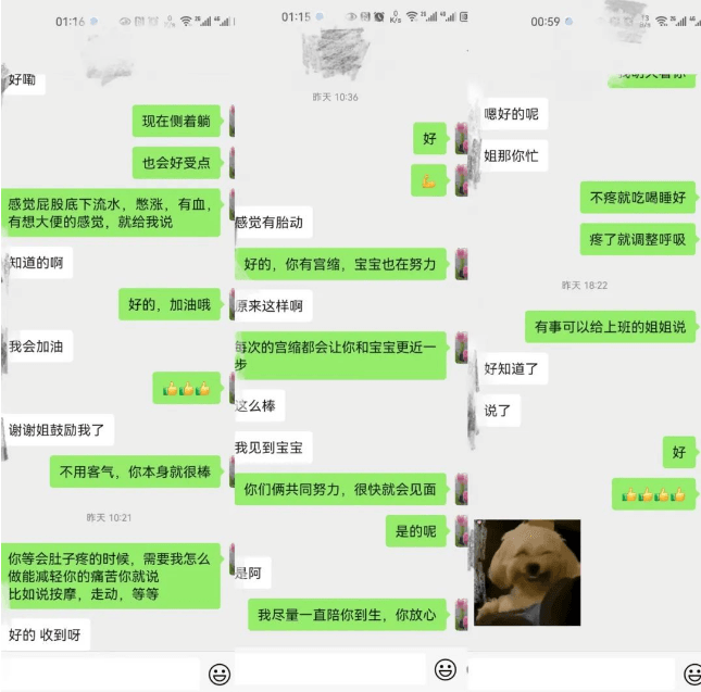 11月7日,產(chǎn)婦入產(chǎn)房待產(chǎn),由于她先天聾啞,這給醫(yī)護人員在待產(chǎn)過程中的溝通增加了不少難度,大家最終通過微信詳細地為她講解了待產(chǎn)過程中宮縮的特點、如何緩解緊張情緒、如何拉瑪澤呼吸緩解疼痛以及待產(chǎn)過程中的注意事項等。