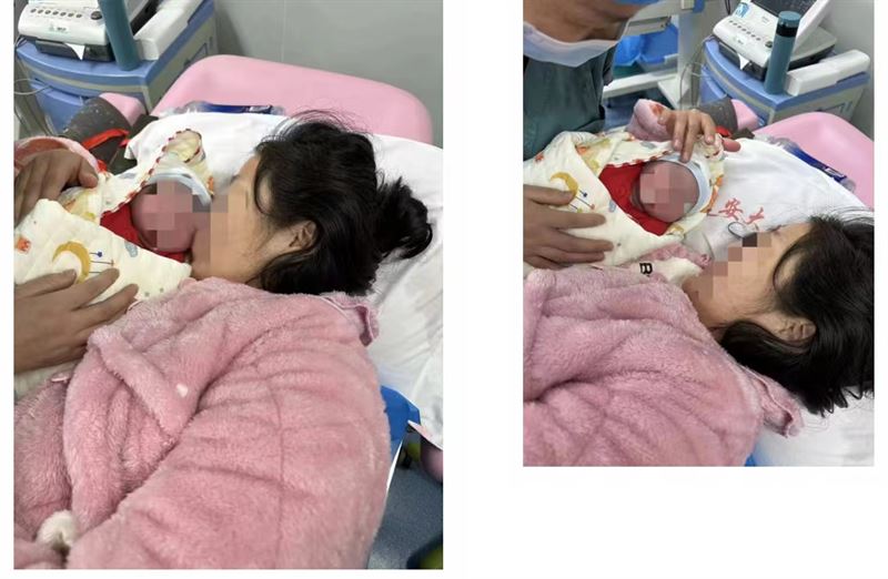 經(jīng)過幾個小時的努力,產(chǎn)婦于00:01平安誕下一名男寶。實施早接觸時,產(chǎn)婦看著寶寶露出了欣慰的笑容,寵溺的親吻了一下,不斷地為我們的醫(yī)生和助產(chǎn)士豎起大拇指,微笑著點頭表達感謝。