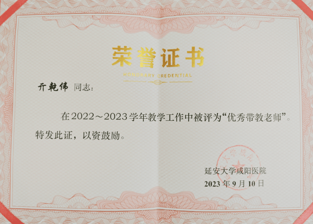 在醫(yī)院有這樣一群人,他們既是醫(yī)者,亦是師者。擁有雙重天職的他們,是白衣天使,用生命守護生命,更是紅燭人梯,用智慧啟迪心靈。他為人師表,言傳身教,高度敬業(yè),嚴格要求,把良好的醫(yī)德醫(yī)風帶入教學工作中,實施教學人性化管理,及時予以關懷。亓乾偉時常告訴學生:作為一名合格的神經外科醫(yī)生需要具備諸多優(yōu)良品質。一是要有扎實的基礎理論知識,同時在醫(yī)療外科方面具有較高的悟性(看到CT片或者磁共振片子以后腦海里要立即出現手術的切口大小,切口的深度),要有一雙精巧的手;二是要具有一顆一心為患者著想的仁心,不管是神經外科醫(yī)生還是其他科室從業(yè)者,面對備受疾病折磨的人群,都應該懷著一顆仁慈之心;同時還要有奉獻精神,神經外科手術一般都在3至4個小時,一些難度大的手術甚至十幾個小時,所以要想成為一名神經外科醫(yī)生奉獻精神是基本素養(yǎng)。最后要強調,神經外科的病人病情變化快,要有豐富的臨床經驗,學習與總結是不斷提升的基礎,只有不斷的提升自我才能擁有一雙慧眼,在第一時間發(fā)現患者病情。就這樣他帶出了一批又一批像他一樣品質卓越的年輕醫(yī)生,為科室及醫(yī)院的人才計劃以及梯隊建設做出巨大貢獻。獲得大家一致認可,并多次獲得院內頒發(fā)的優(yōu)秀代教老師獎項。