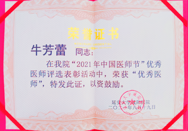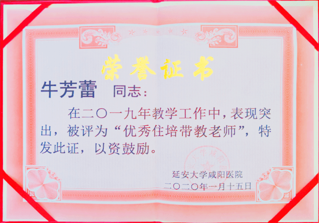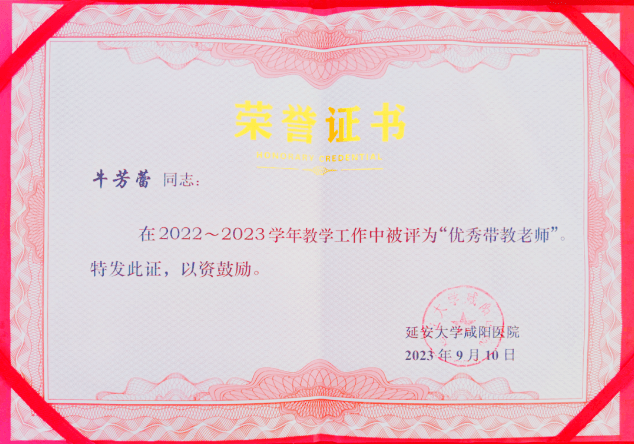 曾擔任為學校培養合格畢業生和為單位培養優秀臨床醫師的重任,作為科室的教學秘書,牛芳蕾醫生非常注重對實習生、規培生的帶教和培養,在實習生和規培生中,贏得了良好的口碑。