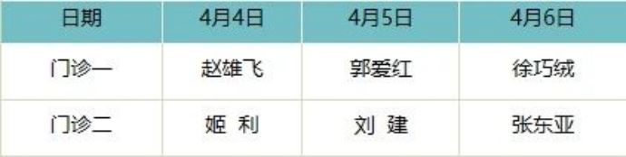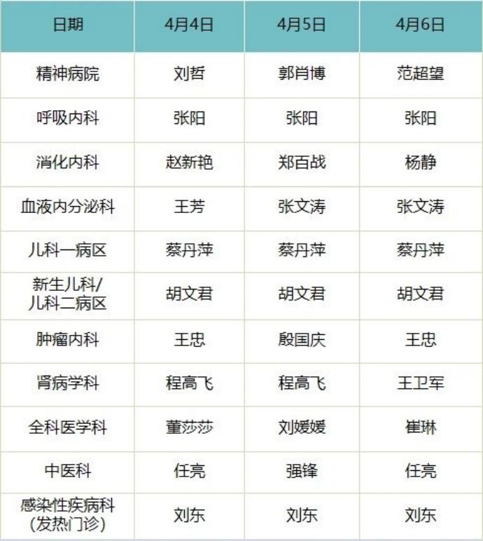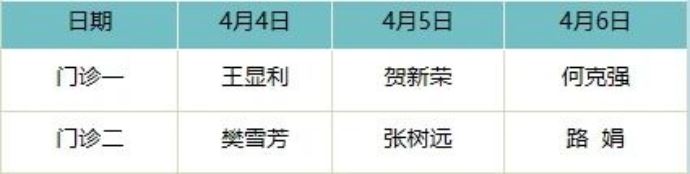 - 心血管病院門診排班表 -